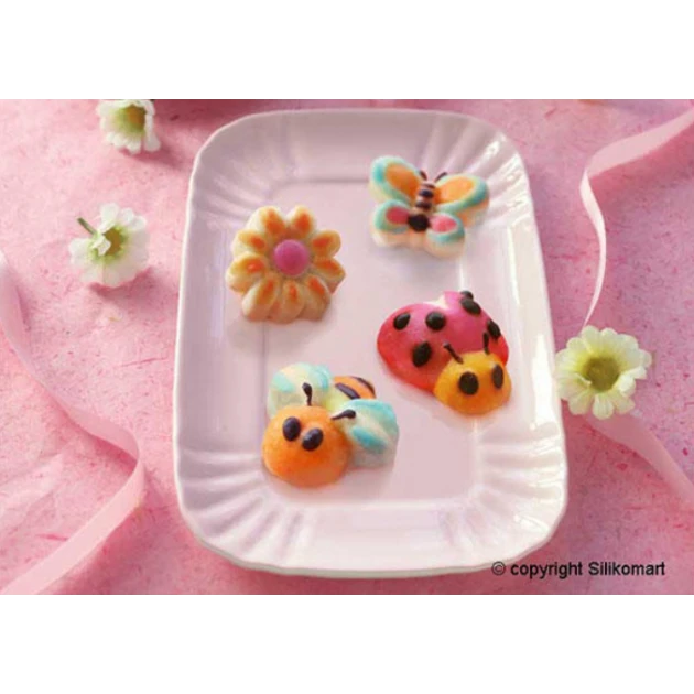 Pour un goûter printanier qui enchantera petits et grands, égayez vos assiettes avec des gâteaux papillons, coccinelles et fleurs. Réalisez un assortiments de desserts nature et animaux avec un moule silicone composé de toutes les formes dont vous avez besoin.